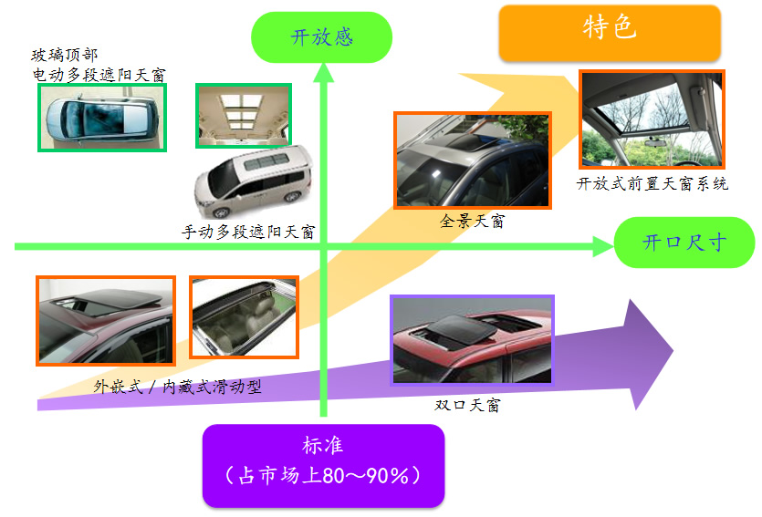 八华体的天窗对过往产品实现了大幅度的轻量化,在汽车的燃油费削减中作出了贡献。另外,为了提高车内的舒适性,生产了能实现纤薄化的车内空间、带有宁静低运作音等特性的产品。