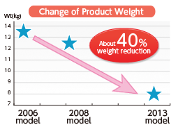 In recent years, automobiles are required to improve fuel efficiency from the viewpoint of environmental protection, and it is necessary to reduce the automotive weight for that purpose. Yachiyo’s sunroofs realized remarkable weight reduction compared to conventional products.