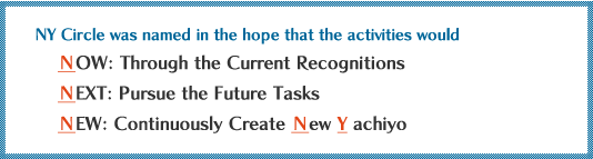 Through the NY Circle activities, Yachiyo intends to control and maintain product quality, and, at the same time, Yachiyo hopes that each associate accumulates knowledge and experience, thereby leading to Yachiyo’s further development.